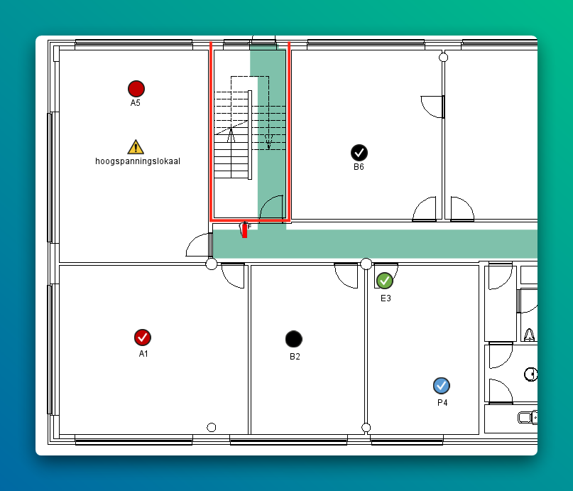 Opmerkingen uit de risicoanalyse die opgelost werden worden nu duidelijk op de plannen weergegeven met een vinkje. Ook de datum wanneer dit probleem opgelost werd wordt bijgehouden.