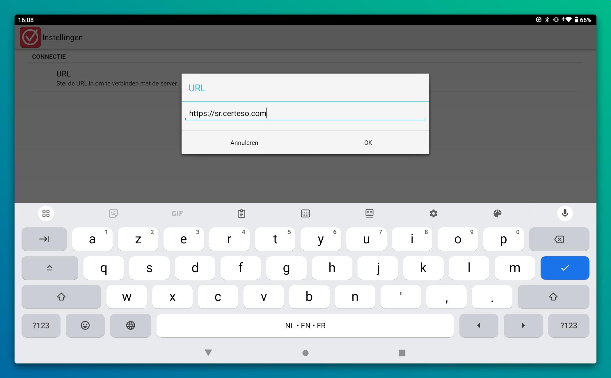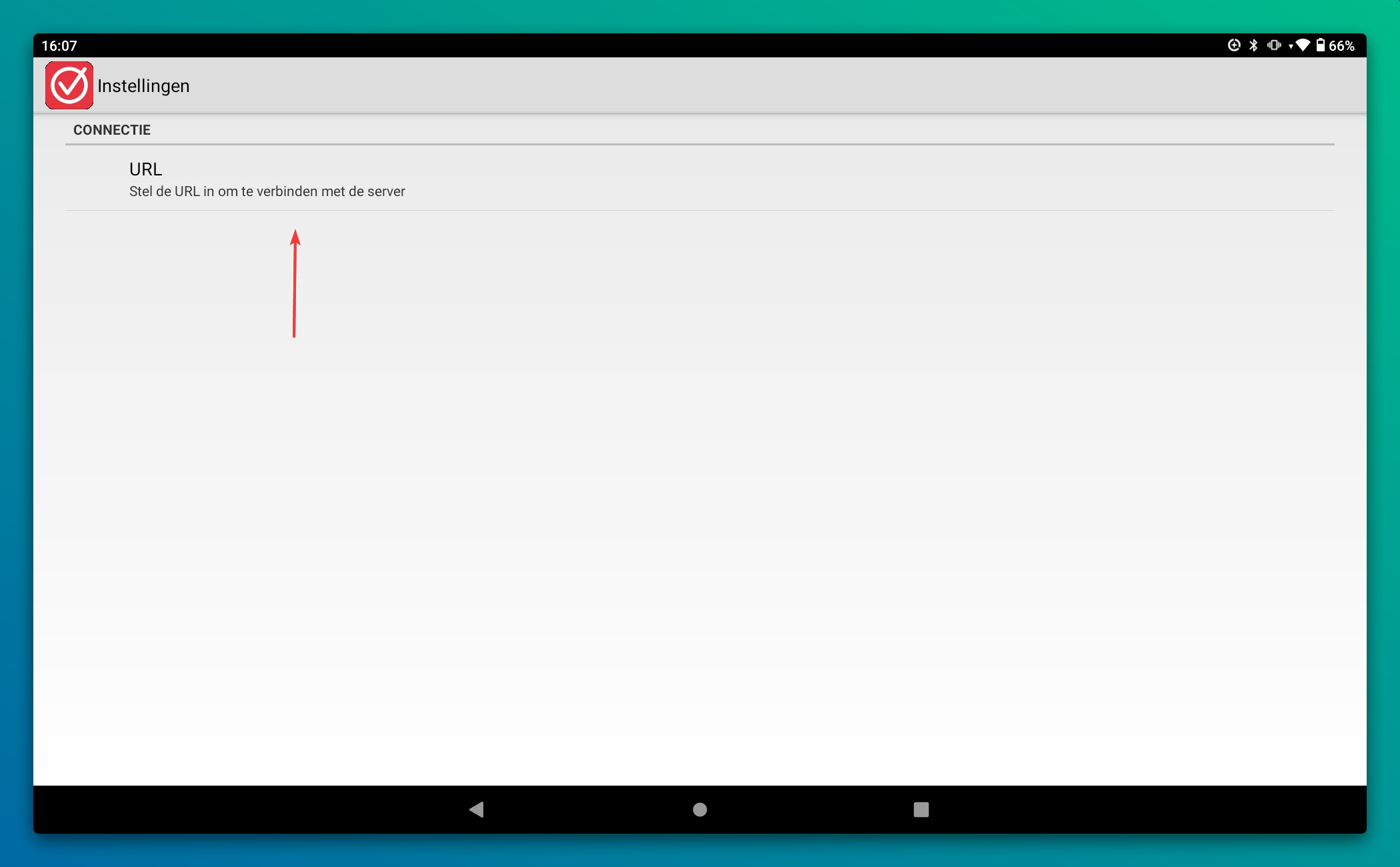 Je klikt bovenaan op Stel de URL in om te verbinden met de server.
