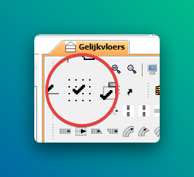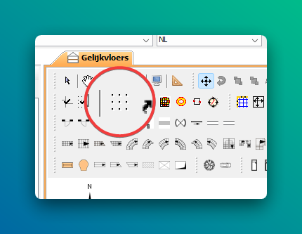 In het bovenstaande voorbeeld is het raster verdeeld in gelijke vierkanten van 1m op 1m. Dit tekent het makkelijkst. Je kan nog steeds een muur tekenen die tussen de rasterlijnen ligt maar het raster geeft een beter inzicht in de lengtes van de muren die je tekent.