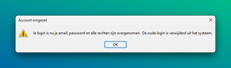 Tot slot krijgt u een melding dat uw oude login is verwijderd en dat uw account is gekoppeld aan het ingevoerde e-mailadres.