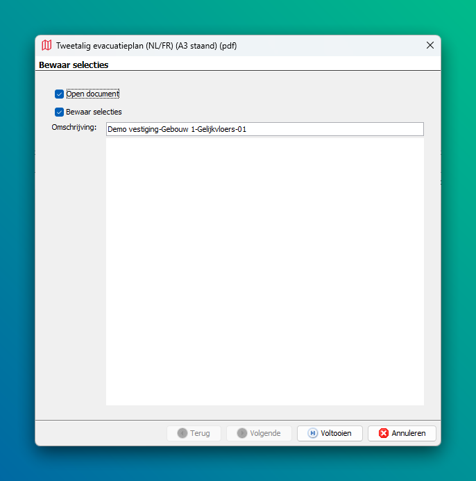 Optioneel kan u ook een logo inlezen om weer te geven op het evacuatieplan.