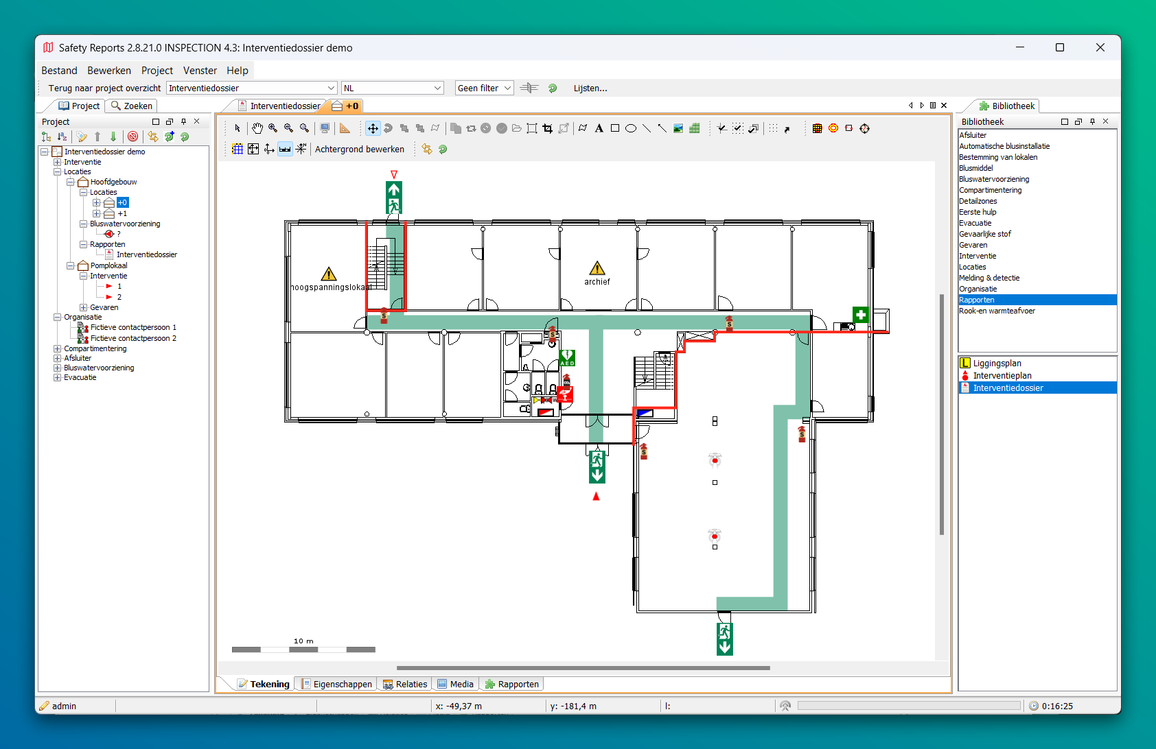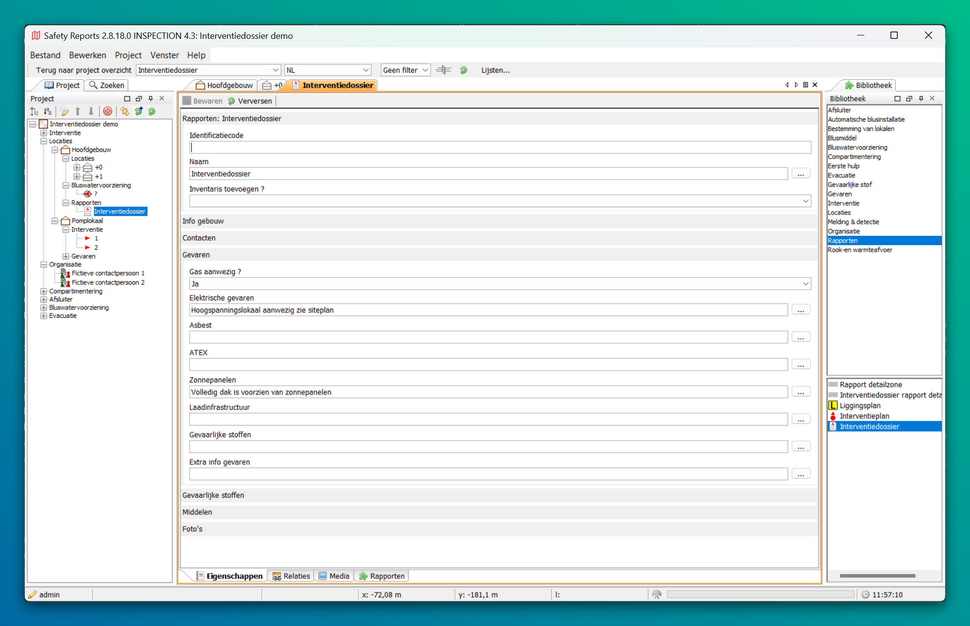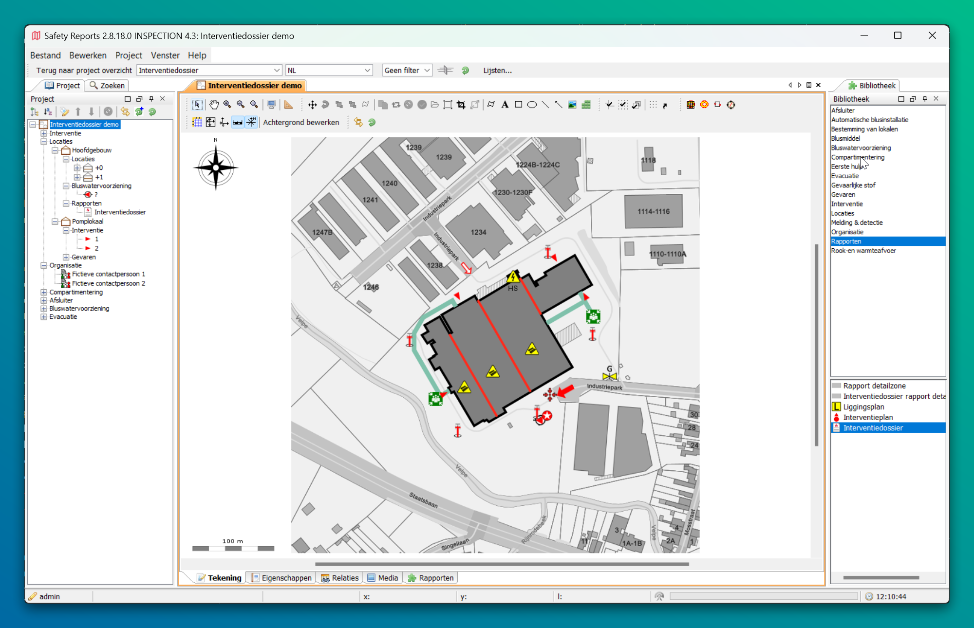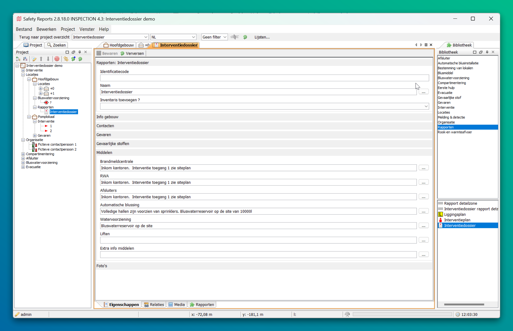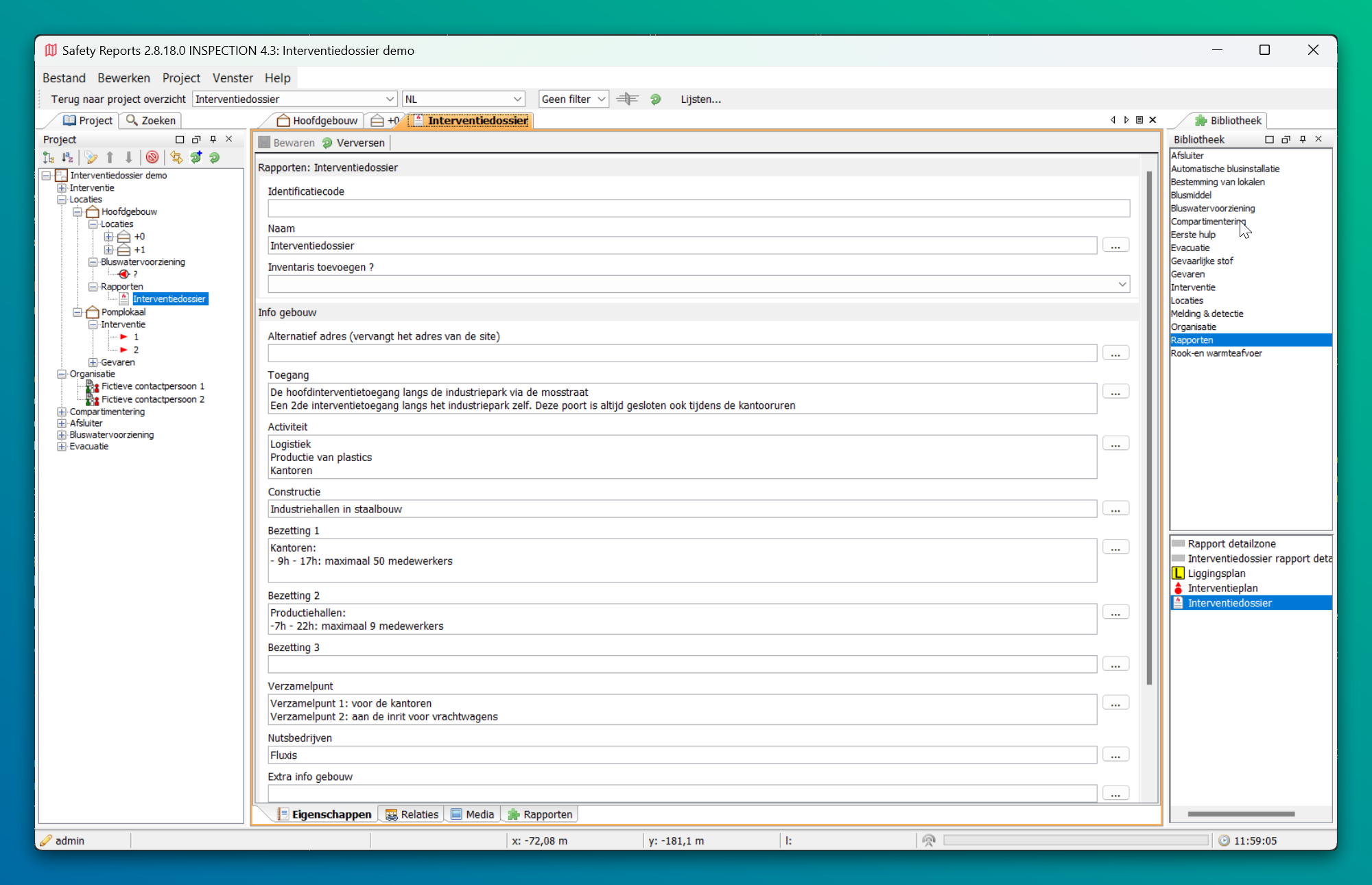 Wanneer alle informatie ingegeven is in de site, verdiepingen en in het interventiedossier kunnen we een rapport aanmaken:
