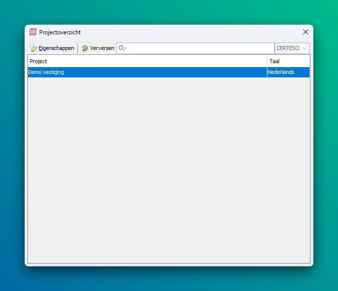 Het project overzicht toont je alle vestigingen waarvoor je een safety reports project hebt. Door te dubbel-klikken open je de vestiging.