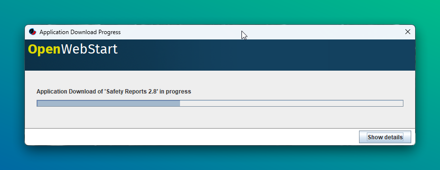 De eerste keer zal OpenWebStart ook de juiste versie van Java downloaden.